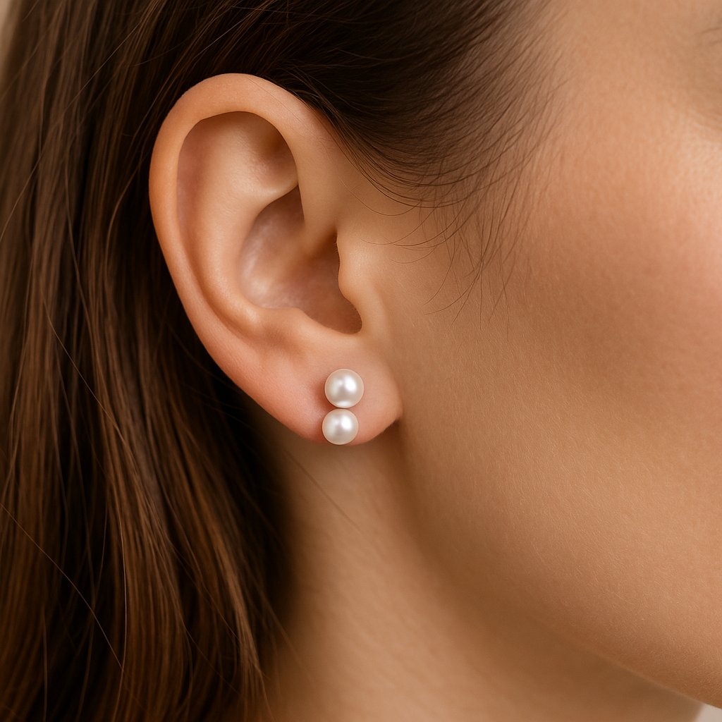 Zvolte šperk, který v sobě spojuje klasickou krásu perel a moderní eleganci. Tyto stříbrné náušnice se dvěma perlami v sobě nesou rovnováhu, jemnost i nadčasový styl.