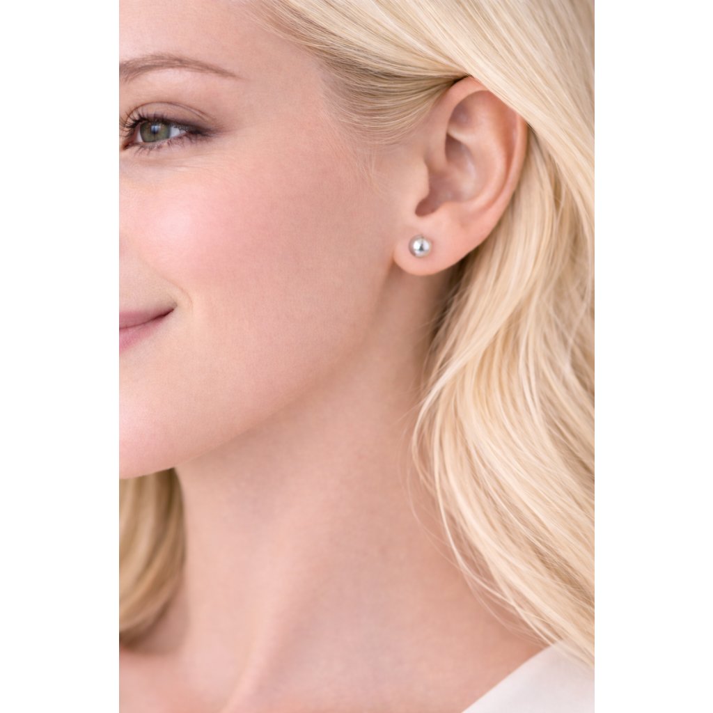 Stříbrné náušnice ve tvaru hladkých kuliček o průměru 7 mm zaujmou jednoduchým, nadčasovým designem, který se krásně hodí k různým outfitům.