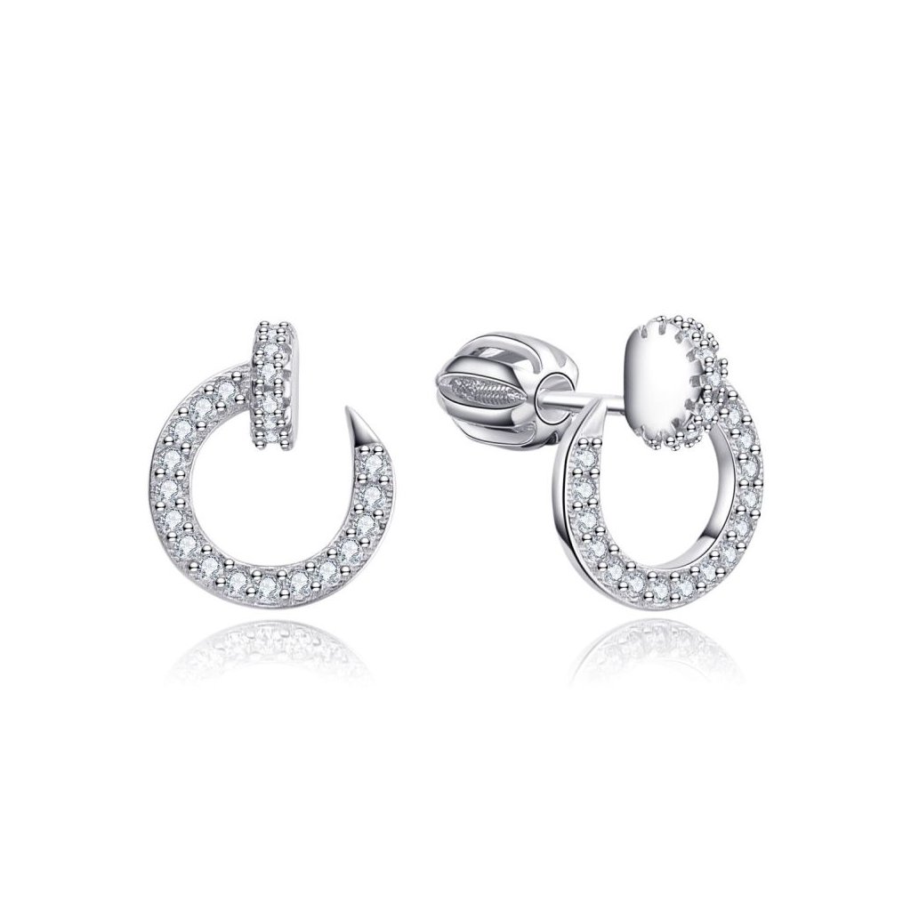 Tyto stříbrné náušnice hřebíky se zirkony představují elegantní a zároveň minimalistický šperk. Design ve tvaru hřebíku je jednoduchý, ale díky vsazeným bílým zirkonům získává decentní třpyt a zář.