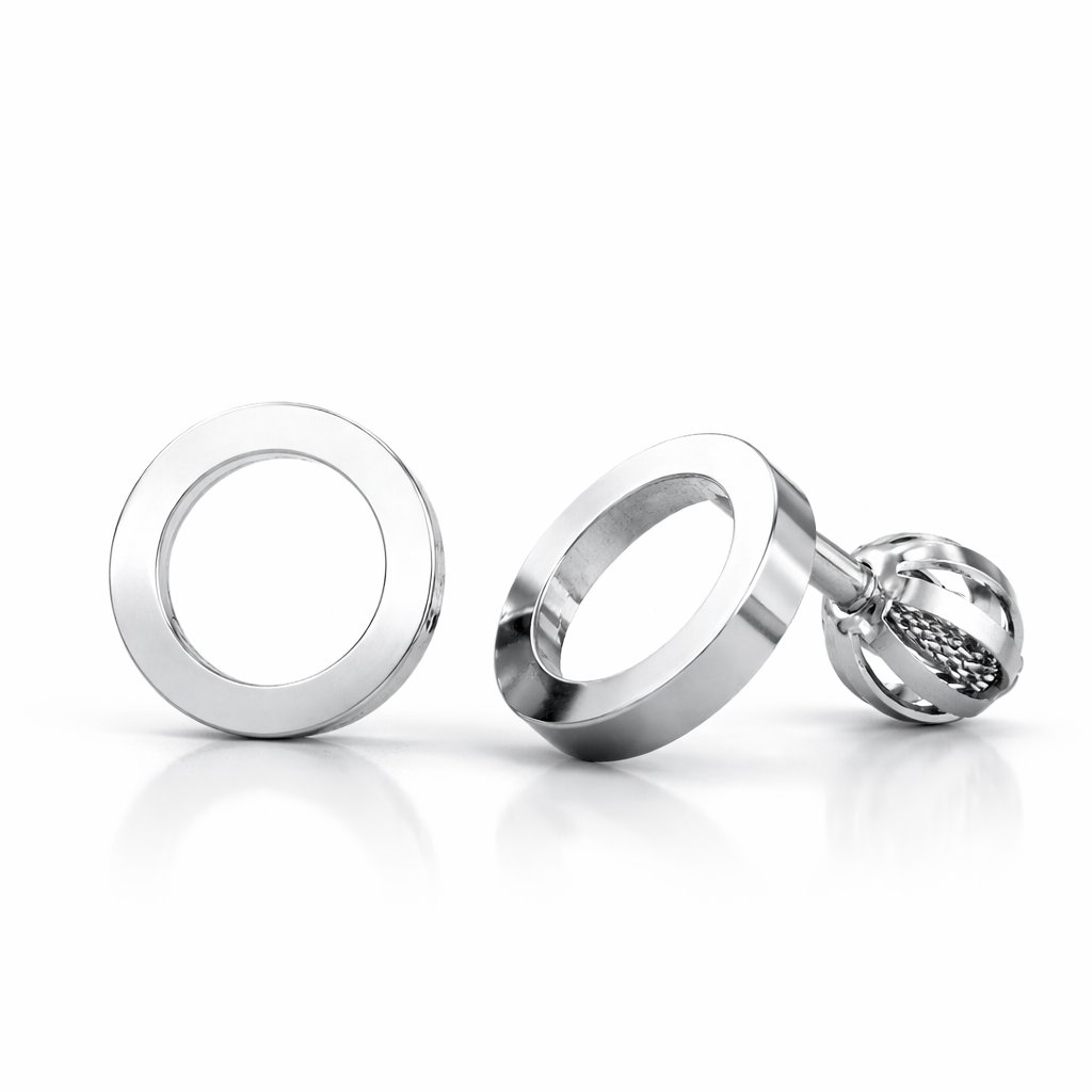 Náušnice tvoří precizně obrácené malé kolečko s hladkým povrchem, které působí esteticky a harmonicky na uších. Díky šroubkovému zapínání se pohodlně a bezpečně nosí celý den. Univerzální design se snadno kombinuje s dalšími šperky a doplňky.