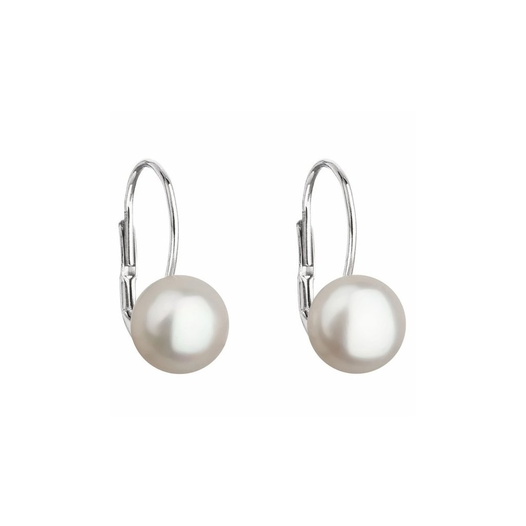 Tyto jemné a elegantní náušnice jsou ozdobeny bílými říčními perlami, které dodávají šperku nadčasový vzhled. Perly mají krásný lesk a jsou uchyceny v jednoduchém stříbrném lůžku, což vytváří harmonii mezi kovem a perlou