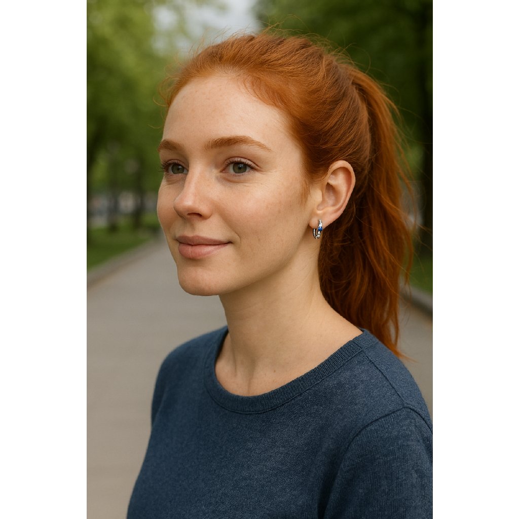 Náušnice jsou vyrobeny ze stříbra 925/1000, což zaručuje vysokou kvalitu a dlouhou životnost. Mají rhodinovou povrchovou úpravu, která pomáhá zachovat zářivý lesk a chrání před zčernáním. Jsou osazeny kubickými zirkony — modrými (levandulová varianta) a bílými, které dodávají třpytivost a jemný kontrast.