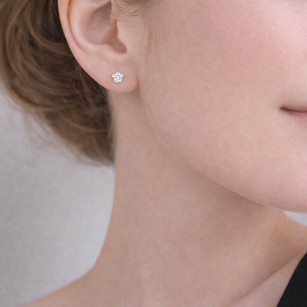 Náušnice mají motiv tlapky, který symbolizuje lásku ke zvířatům, věrnost a hravost. Tento motiv je doplněn broušenými zirkony, které dodávají kamínkům jasný třpyt a výrazně odrážejí světlo. Zirkony jsou pečlivě zasazeny do tvaru tlapky tak, aby vytvářely harmonický a vizuálně přitažlivý celek. Výsledkem je šperk, který je zároveň estetický i osobitý.