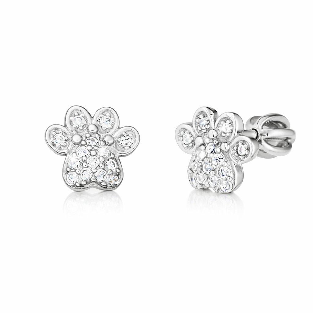 Roztomilé stříbrné náušnice tlapky se zirkony jsou originální a hravý šperk, který kombinuje univerzální motiv tlapky s elegantním třpytivým akcentem kamínků.