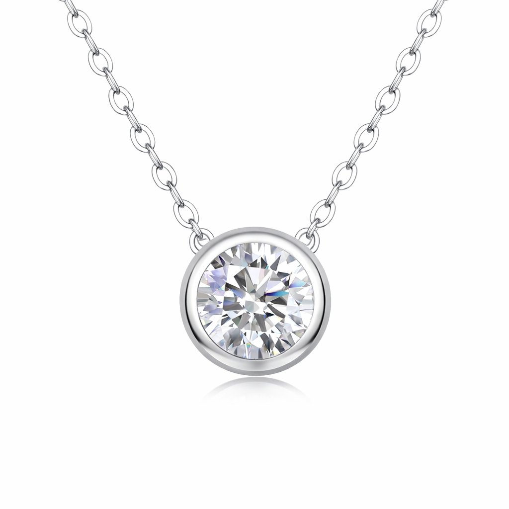 Elegantní stříbrný náhrdelník s moissanitem 1 ct v obrubě je šperk s jemným, ale zároveň výrazným designem, který krásně zvýrazní dekolt.