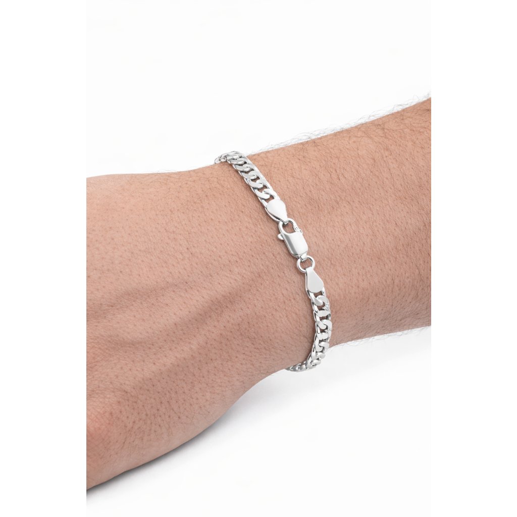 Stříbrný náramek hustý pancer zaujme výrazným, pevně propojeným designem, který působí moderně a elegantně.