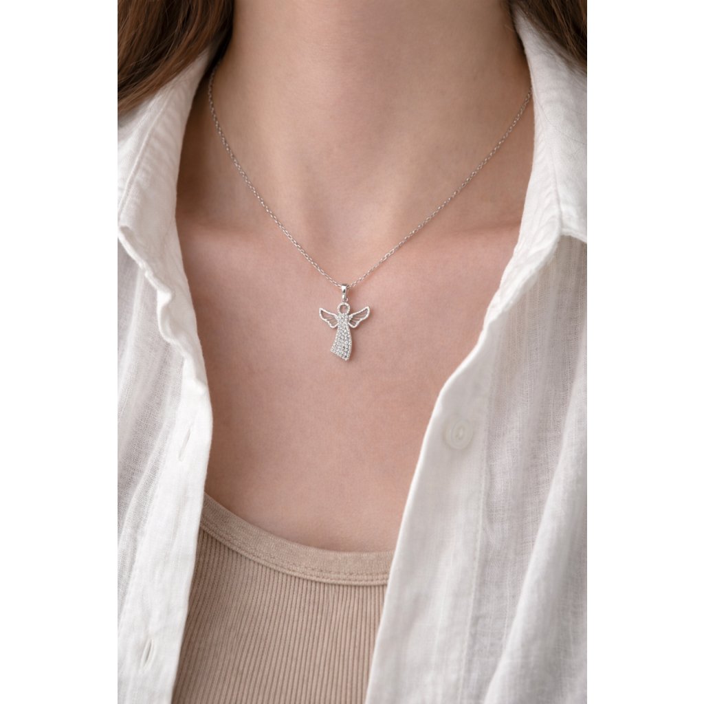 Mějte svého anděla nablízku......Dokonale vypracované detaily anděla s jemnými zirkony tvoří překrásný přívěsek z rhodiovaného stříbra