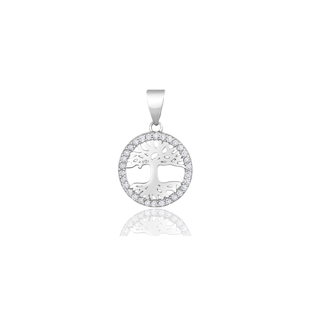Jemný stříbrný přívěsek s motivem Stromu života, osazený třpytivými zirkony. Symbol harmonie, síly a rovnováhy v elegantním provedení.