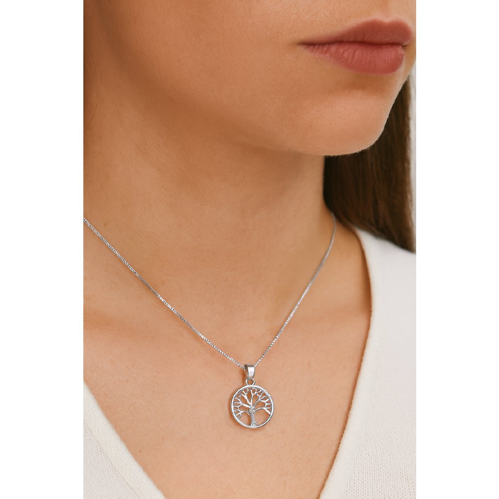 Tento výrazný stříbrný přívěsek ve tvaru stromu zaujme svým symbolickým a zároveň elegantním designem. V jemných větvích se ukrývají detaily, které dodávají šperku hloubku a charakter.