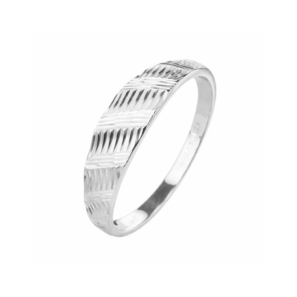 Prsten je vyroben z kvalitního stříbra ryzosti 925/1000 s rhodiovou úpravou, která zvyšuje jeho lesk a odolnost vůči oxidaci. Rhodiování zároveň pomáhá udržet stříbro déle krásné a zabraňuje nežádoucímu ztmavnutí povrchu. Precizní gravírování je provedené s maximální pečlivostí, takže detaily působí čistě a precizně.