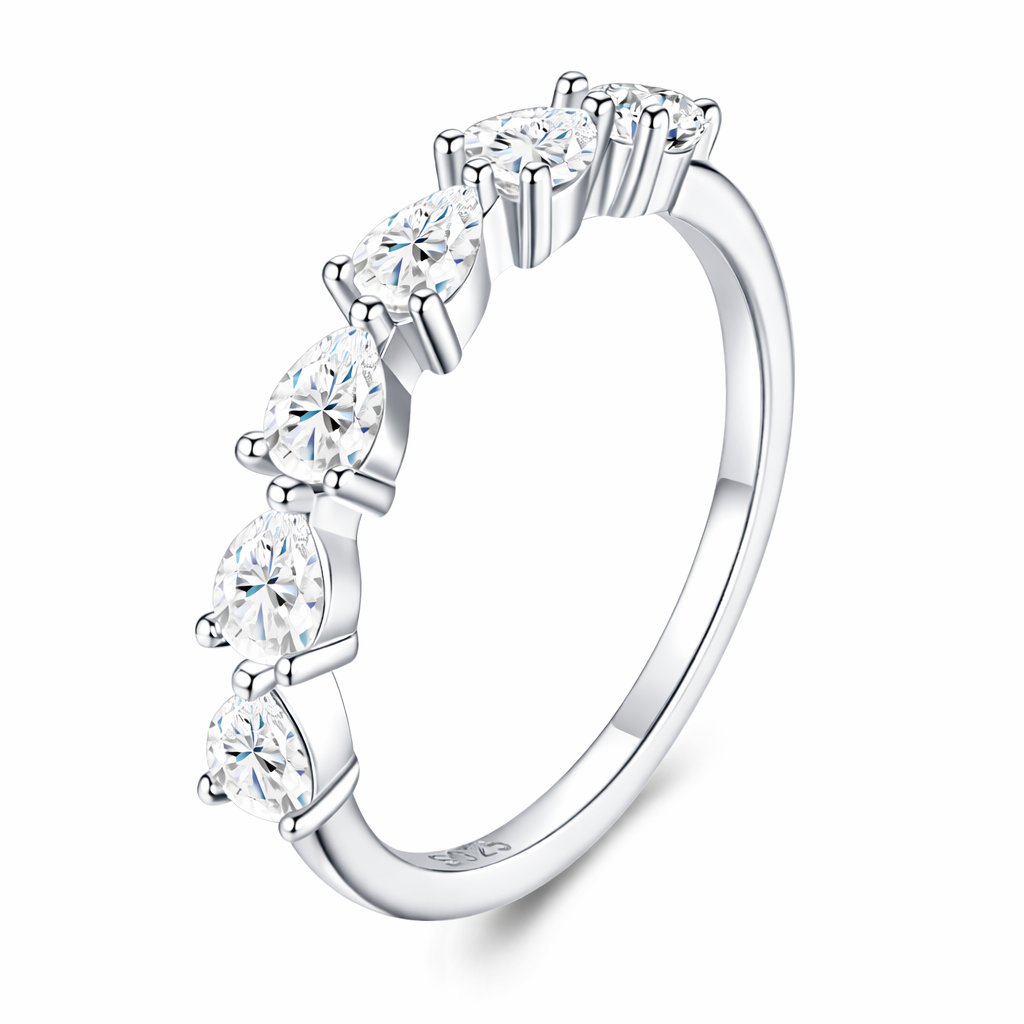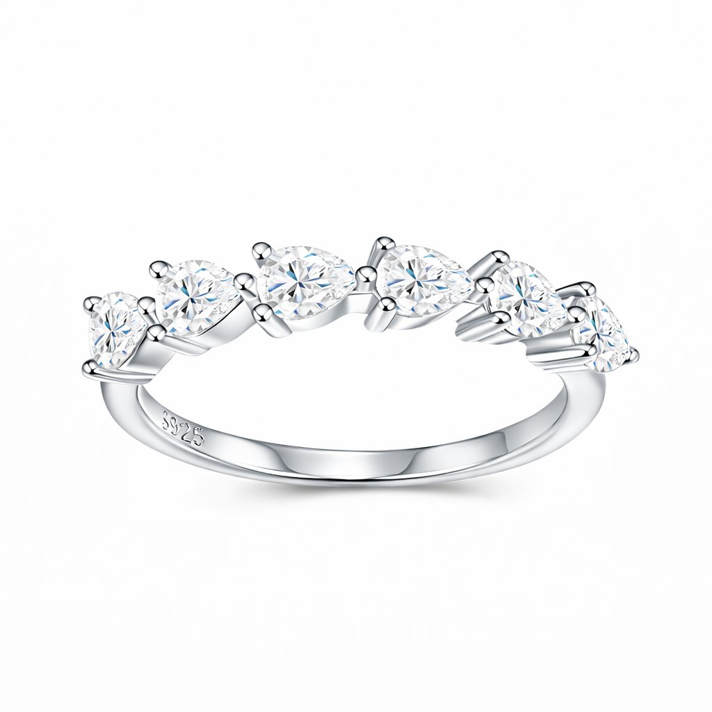 Elegantní stříbrný prsten Kapky s moissanity zaujme jemným a vyváženým designem, který spojuje klasickou krásu stříbra s intenzivním třpytem drahokamů.