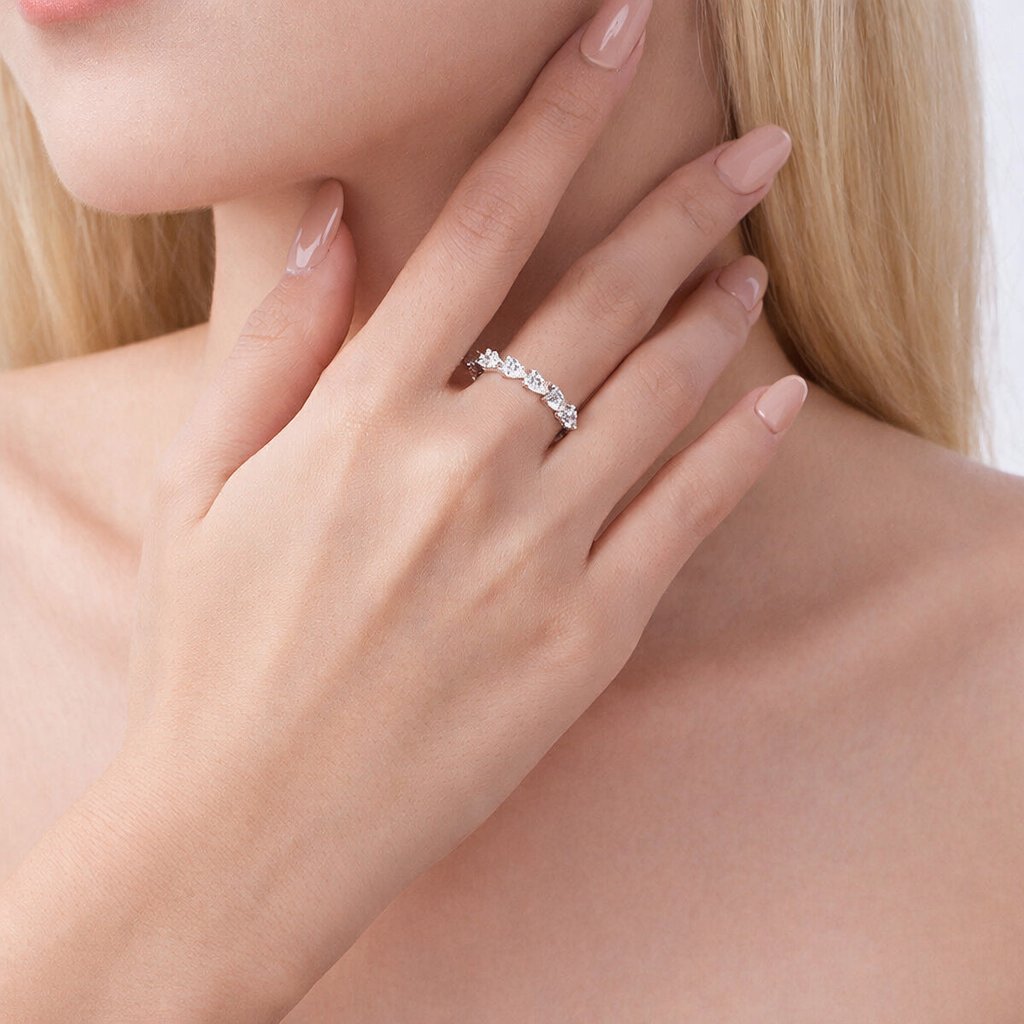 Prsten je vyroben z kvalitního stříbra ryzosti 925/1000 s rhodiovou úpravou, která zvyšuje lesk a chrání povrch proti oxidaci. Moissanit je precizně broušený a pevně zasazený tak, aby maximalizoval světelný efekt a dlouhodobou odolnost šperku při každodenním používání.