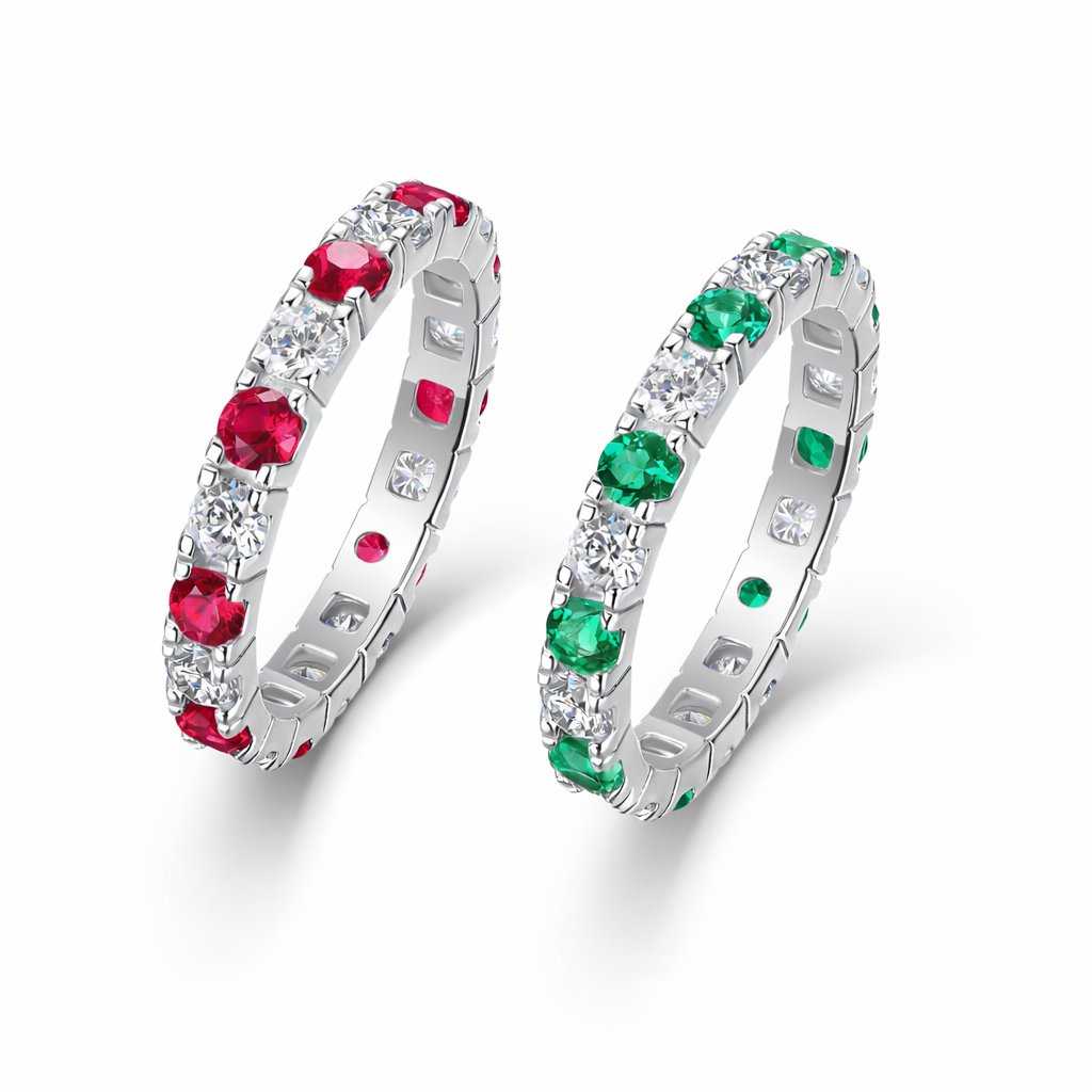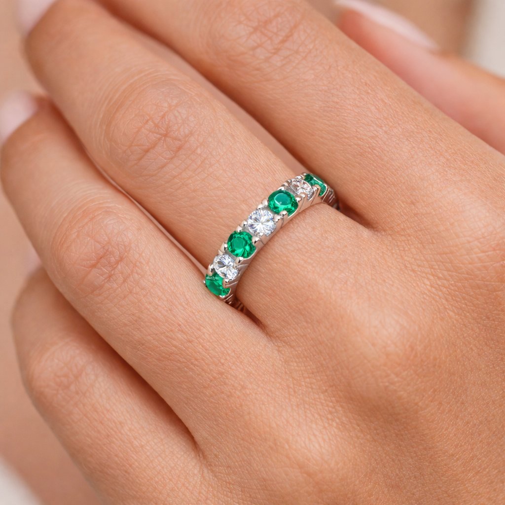 Stříbrný prsten s laboratorními Smaragdy a Moissanity
