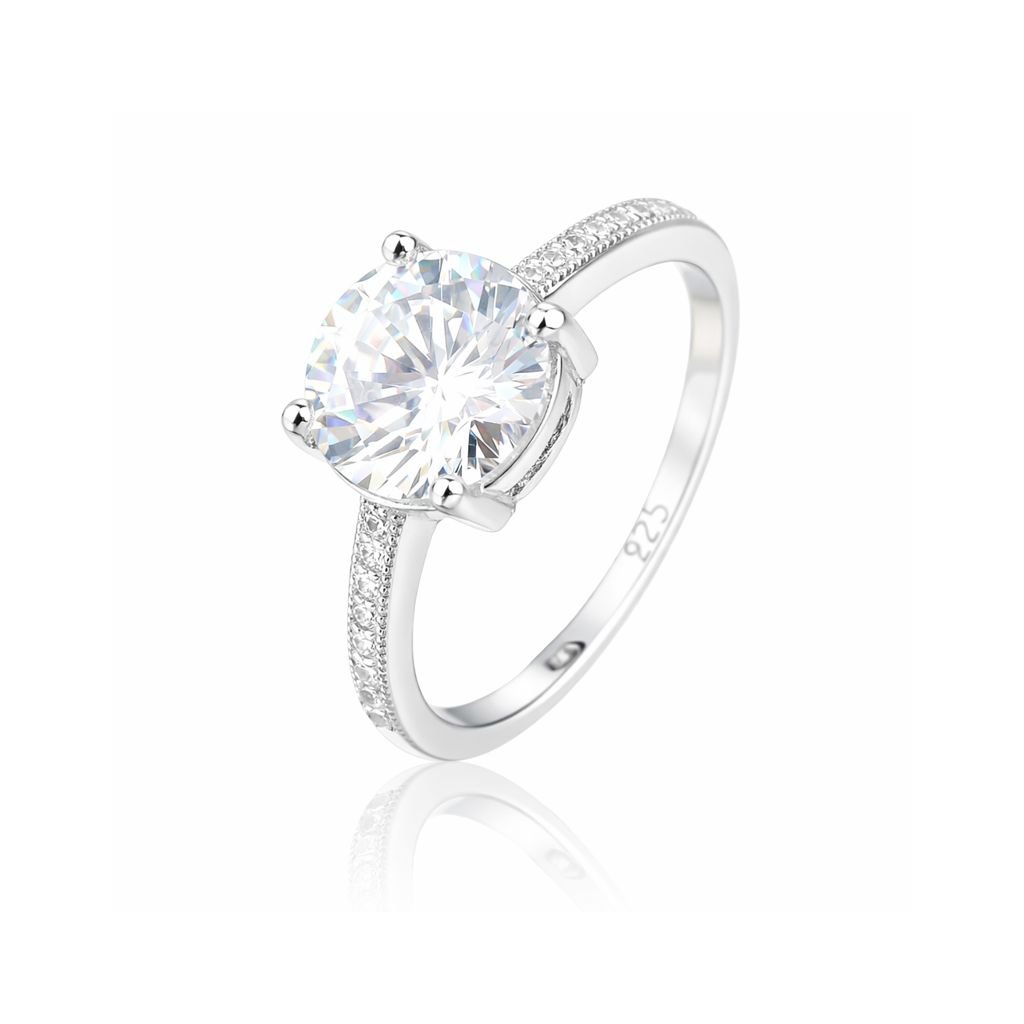 Elegantní stříbrný prsten se zirkony výrazný a třpytivý šperk, který zaujme především svým velkým centrálním kamenem, jenž dodává prstenu luxusní a sofistikovaný vzhled.