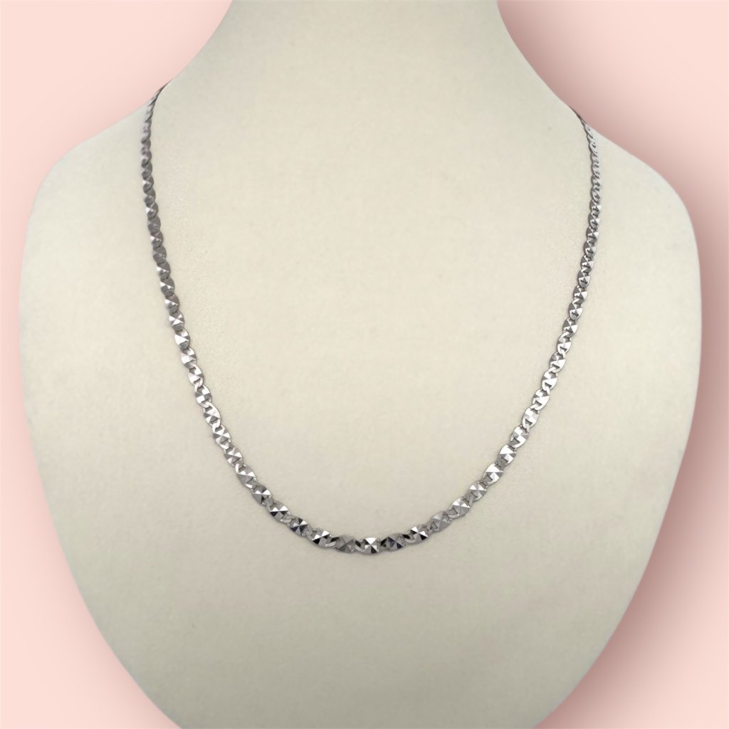 Jemný stříbrný řetízek s precizním gravírováním, který dodává šperku elegantní lesk a sofistikovaný vzhled. Díky univerzálnímu designu se skvěle hodí jak pro samostatné nošení, tak i v kombinaci s přívěsky.