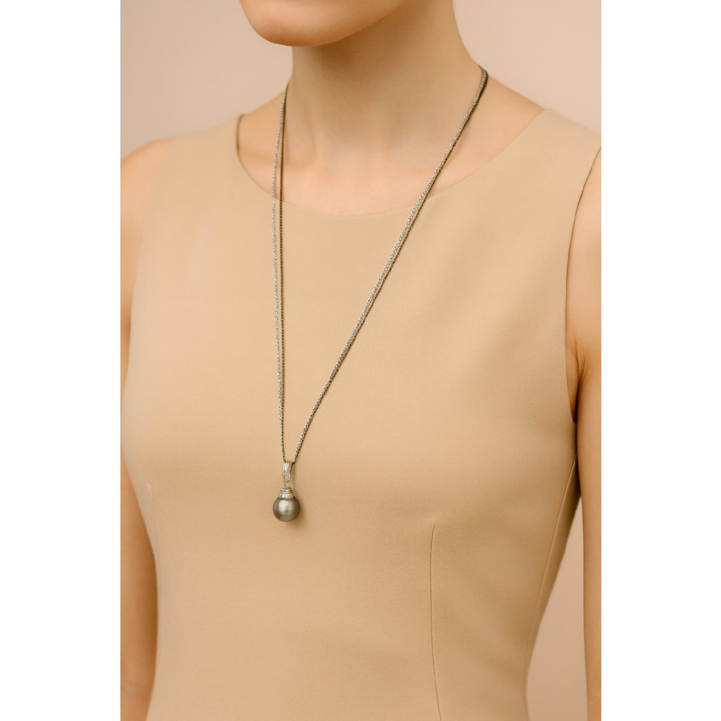 Náhrdelník je vyroben z rhodiovaného stříbra (925/1000) a osazen černou tahitskou perlou. Řetízek má délku 90 cm a je doplněn o certifikát pravosti. Dodává se v dárkovém balení.
