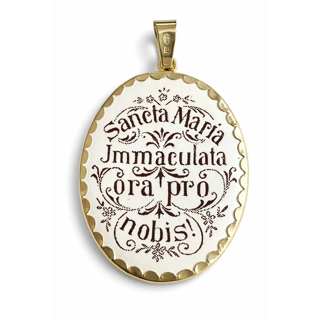 Medailonek zaujme svými precizními detaily vytvořenými technikou smaltování, která přidává jedinečný efekt a barevnou hloubku madončina obrazu. Jeho jednoduchý, ale elegantní design zdobí a dodává šperku unikátní krásu.