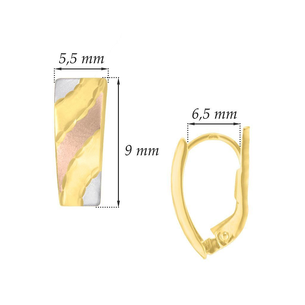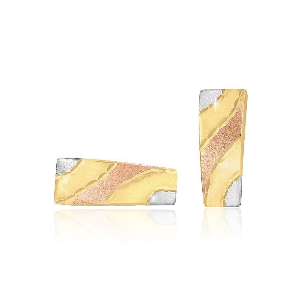 Elegantní zlaté náušnice – 3 barvy zlata jsou unikátní šperk, který kombinuje žluté, bílé a růžové zlato v jednom designu. Tato trojbarevná kombinace dodává náušnicím hloubku, vizuální pestrost a nadčasový vzhled, který se snadno ladí s jinými doplňky i různými odstíny zlata.
