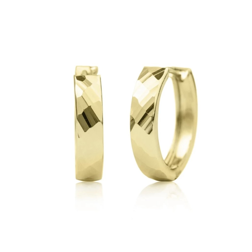 Tyto zlaté kruhy s gravírováním o průměru 15 mm kombinují klasický kruhový tvar s možností personalizace. Gravírování na vnitřní nebo viditelné části kruhu dovoluje vytvořit šperk s vlastním vzkazem, iniciály nebo datem.