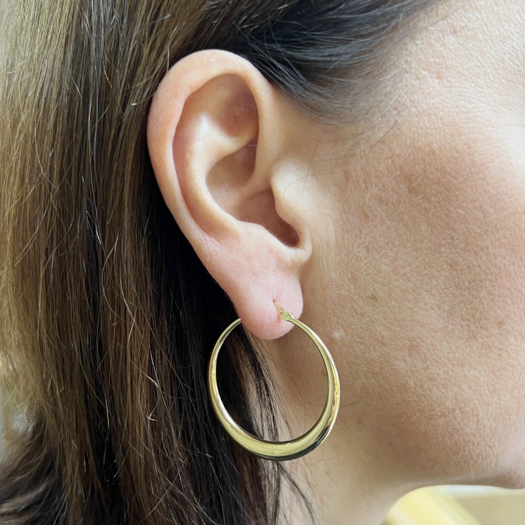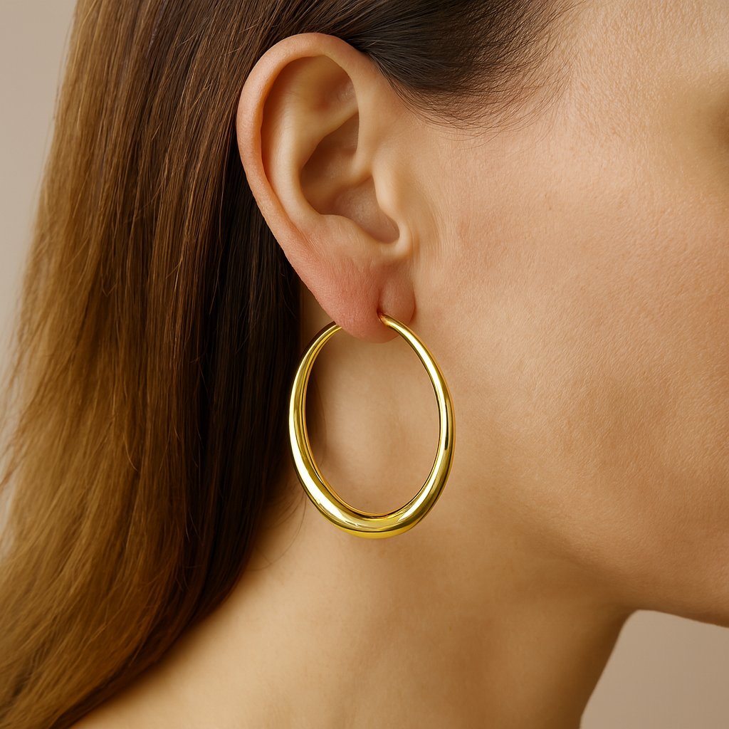 Tyto kruhové náušnice mají hladký a lesklý povrch, který dokonale odráží světlo a dodává jim luxusní vzhled. Jejich tvar a velikost jsou navrženy tak, aby poskytovaly maximální pohodlí při nošení a zároveň podtrhly přirozenou krásu nositelky. Bezpečné zapínání zajišťuje, že náušnice pevně drží na svém místě.