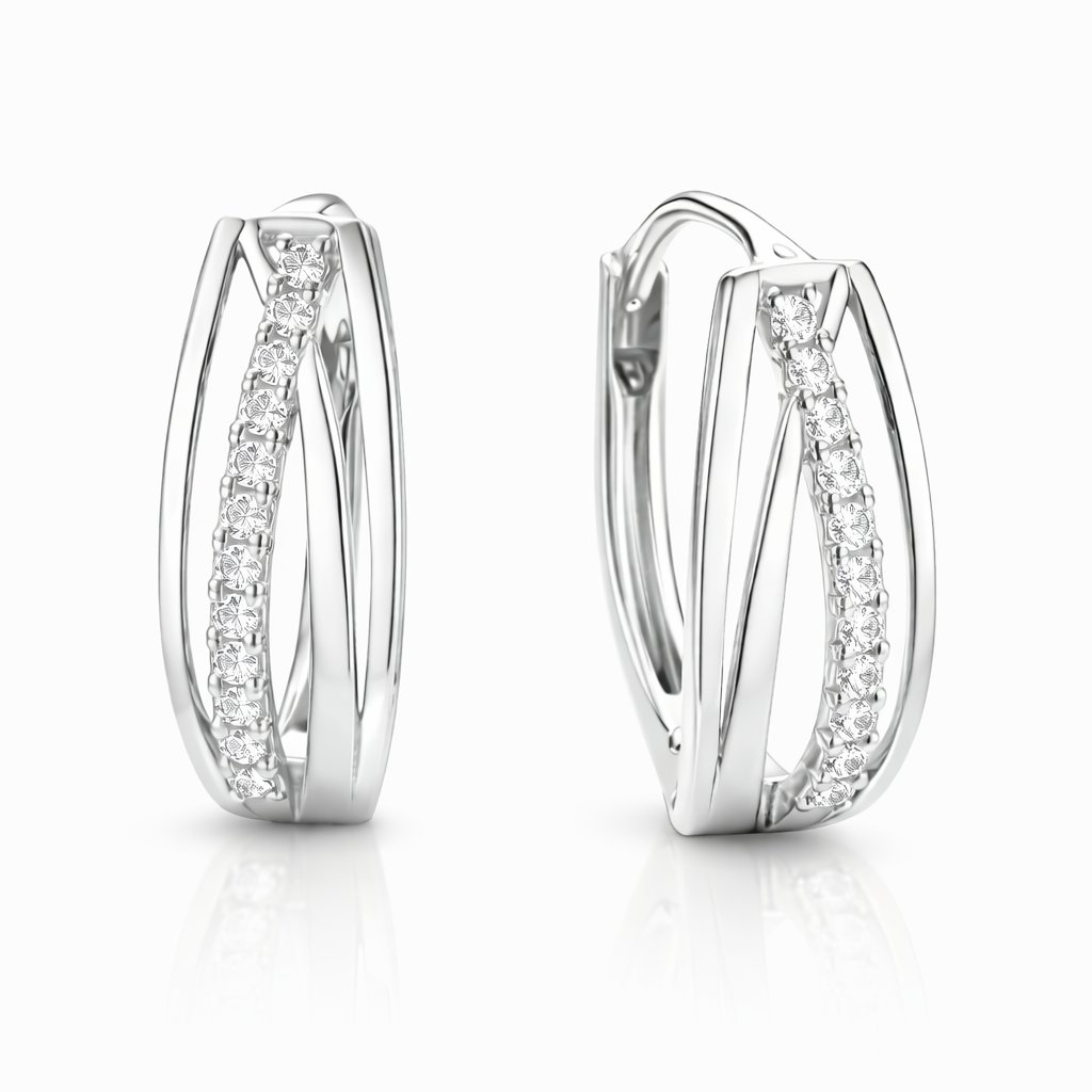 Elegantní zlaté náušnice v bílém zlatě se zářivými zirkony jsou krásný a třpytivý šperk, který kombinuje klasický tvar s působivým odleskem kamínků.