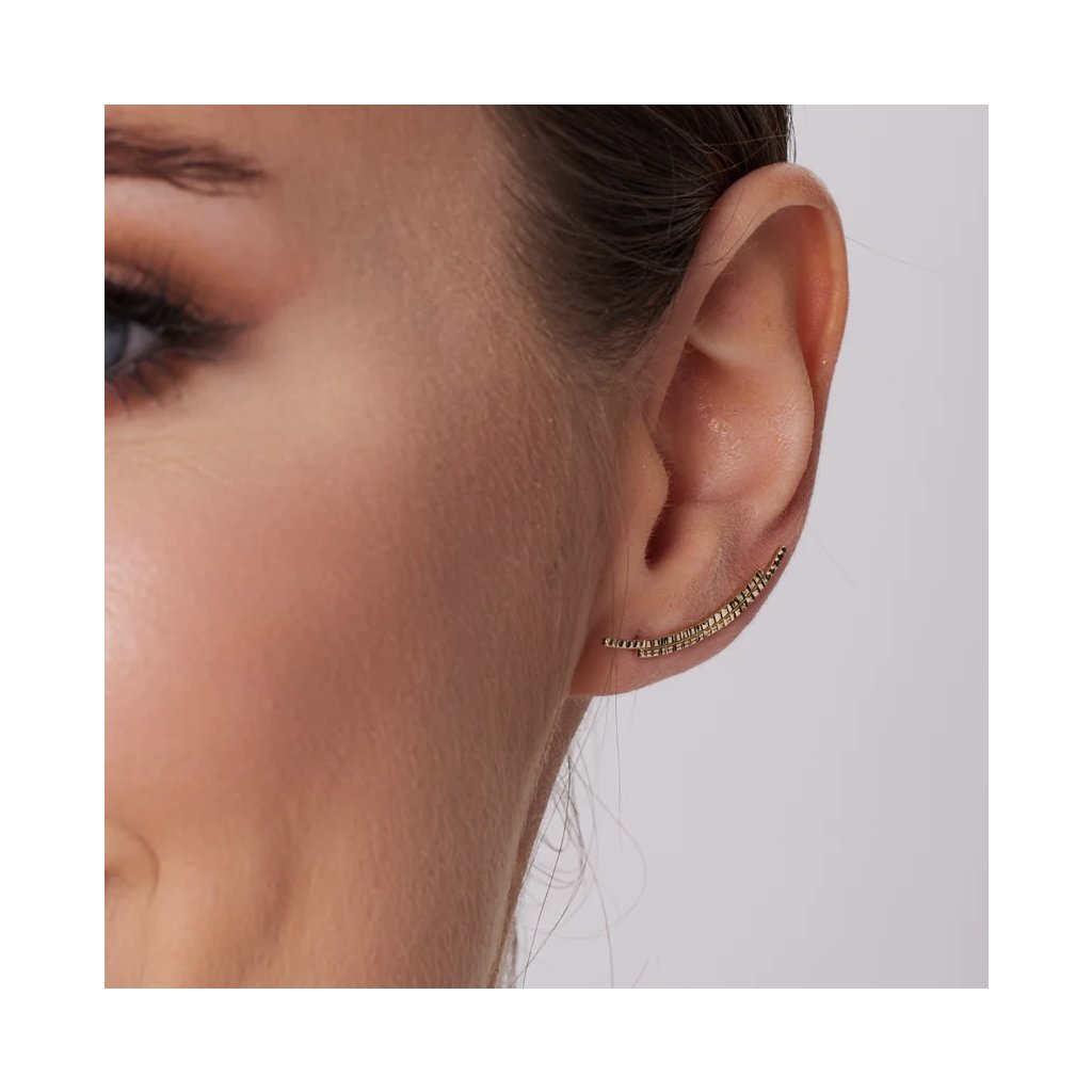 Tyto náušnice mají podlouhlý tvar, který opticky prodlužuje linii krku a dodává obličeji sofistikovaný vzhled. Jemné gravírování na povrchu dodává šperku jemný třpyt a vytváří krásný vizuální efekt při každém pohybu. Zapínání je bezpečné a pohodlné, takže náušnice zůstanou na svém místě po celý den.