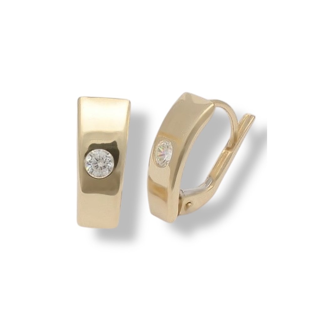 Zlaté jednoduché náušnice se zirkonem jsou elegantním a nadčasovým doplňkem, který se hodí ke každodennímu nošení i slavnostním příležitostem. Jejich minimalistický design v kombinaci se zářivým kamenem dodává šperku jemnost a sofistikovanost.