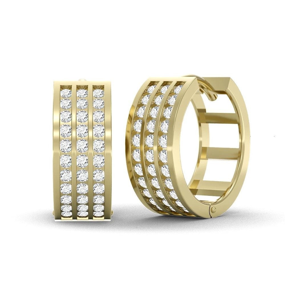 Zlaté náušnice kruhy se zirkony 10mm třířadé