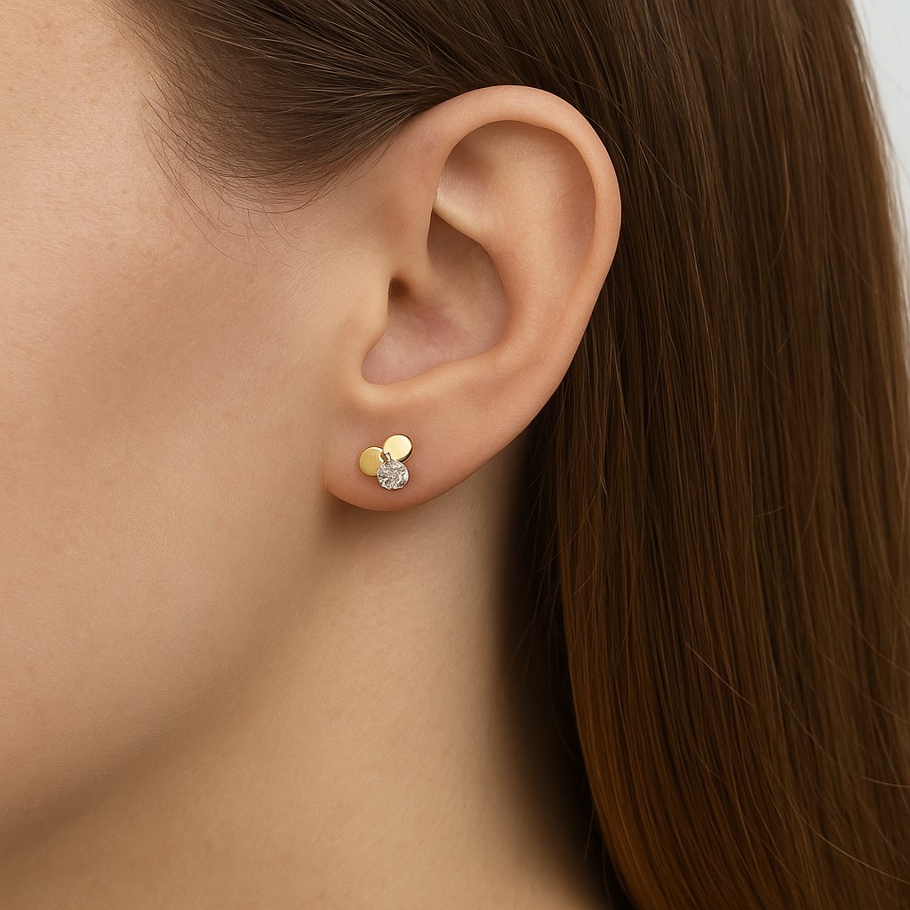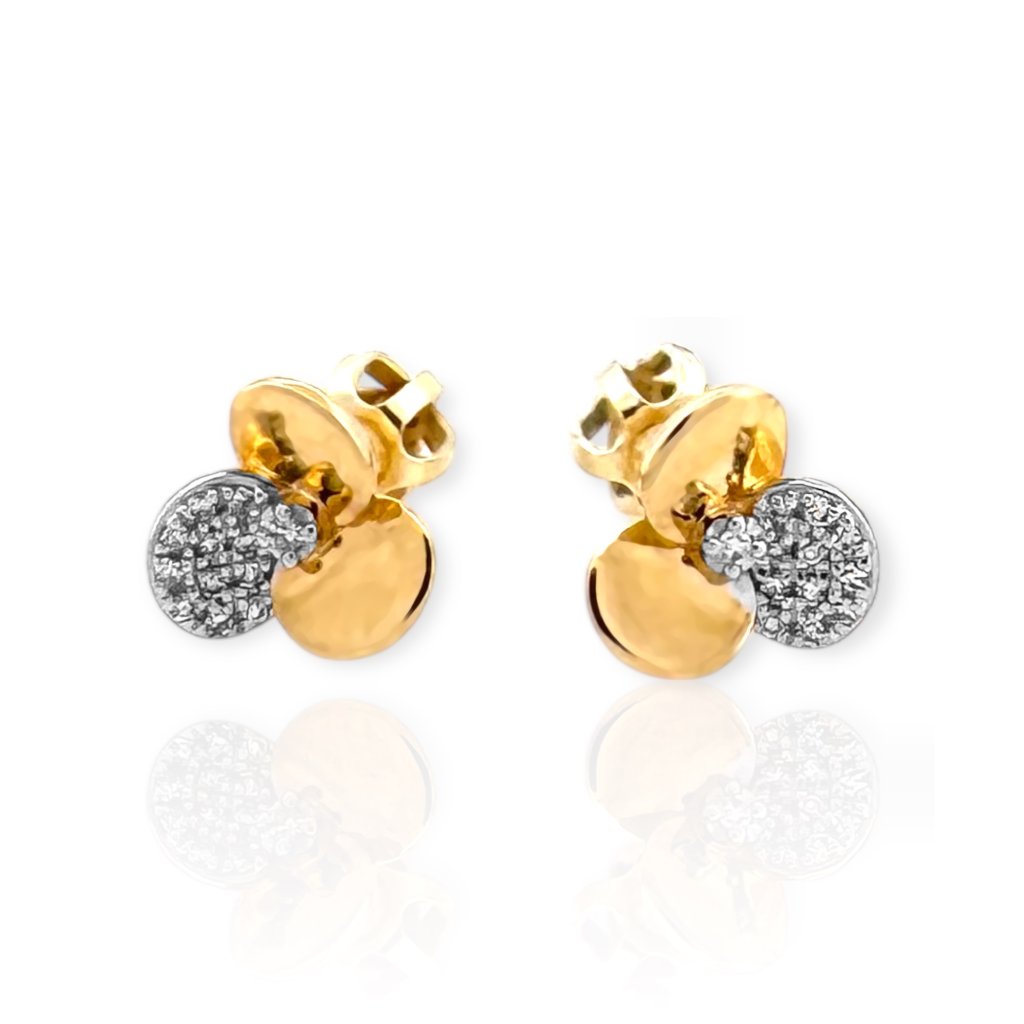 Tyto zlaté náušnice ve tvaru kvítků, zdobené jemnými diamanty, přinášejí harmonii mezi přírodním motivem a luxusním leskem.