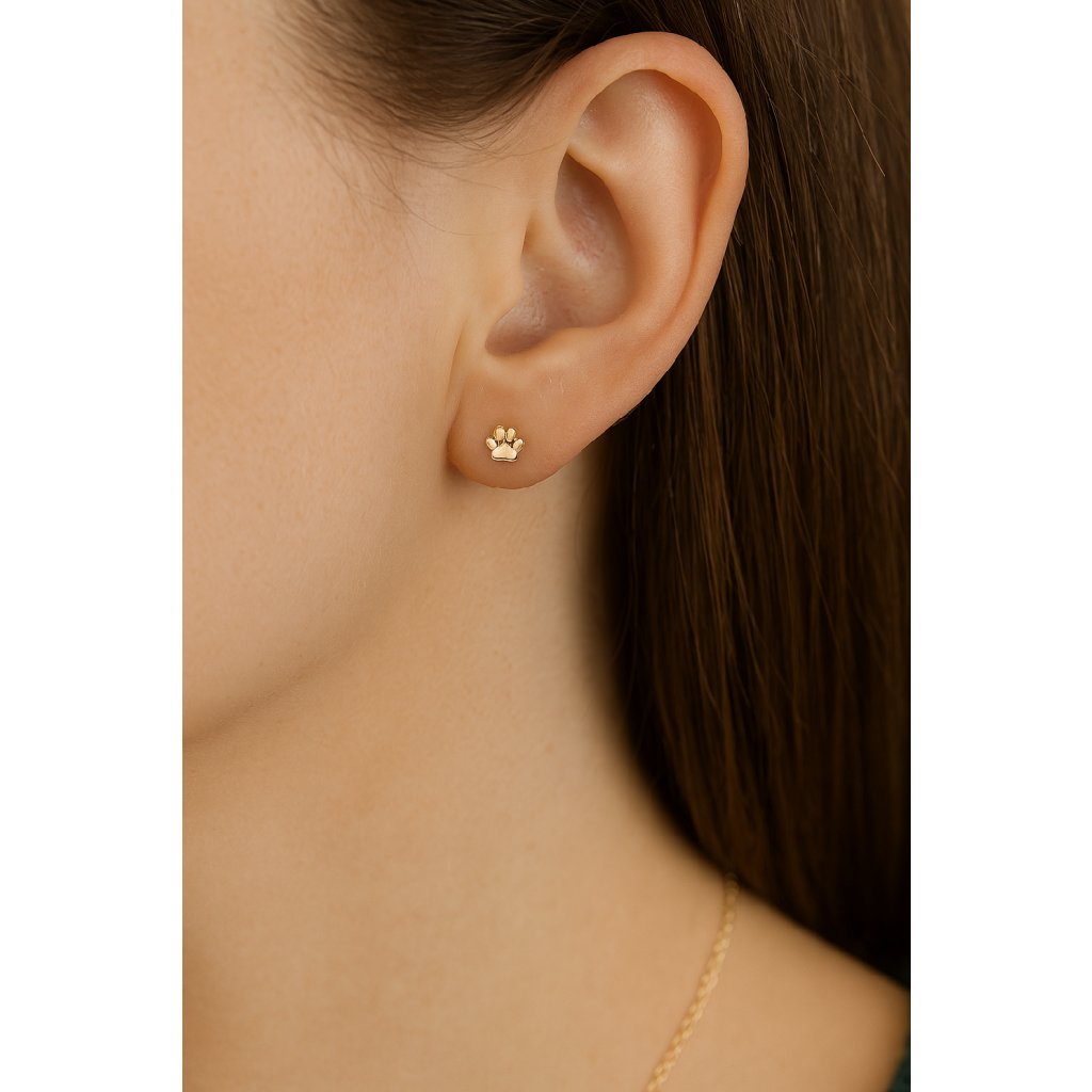 Tyto zlaté náušnice ve tvaru psí tlapky jsou zpracovány v jemném a decentním stylu — ideální volba pro milovníky zvířecích motivů.