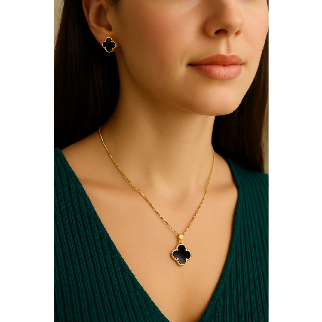 Zlaté náušnice ve tvaru čtyřlístku s černým onyxem jsou symbolem elegance a štěstí. Precizní zpracování a kontrast mezi zlatem a hlubokou černou barvou dodávají náušnicím sofistikovaný vzhled. Ideální volba pro ženy, které milují stylové a nadčasové šperky.