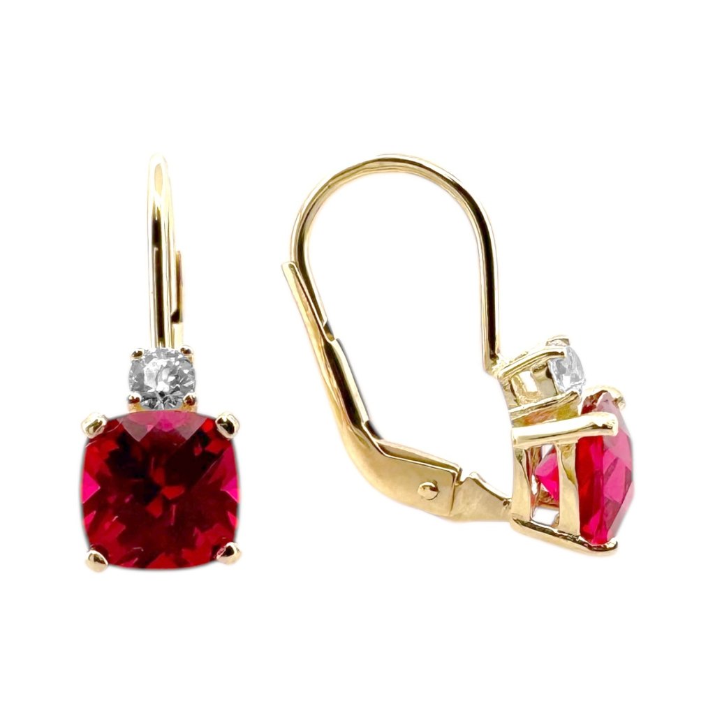 Zlaté náušnice se se syntetickým Rubínem hranaté