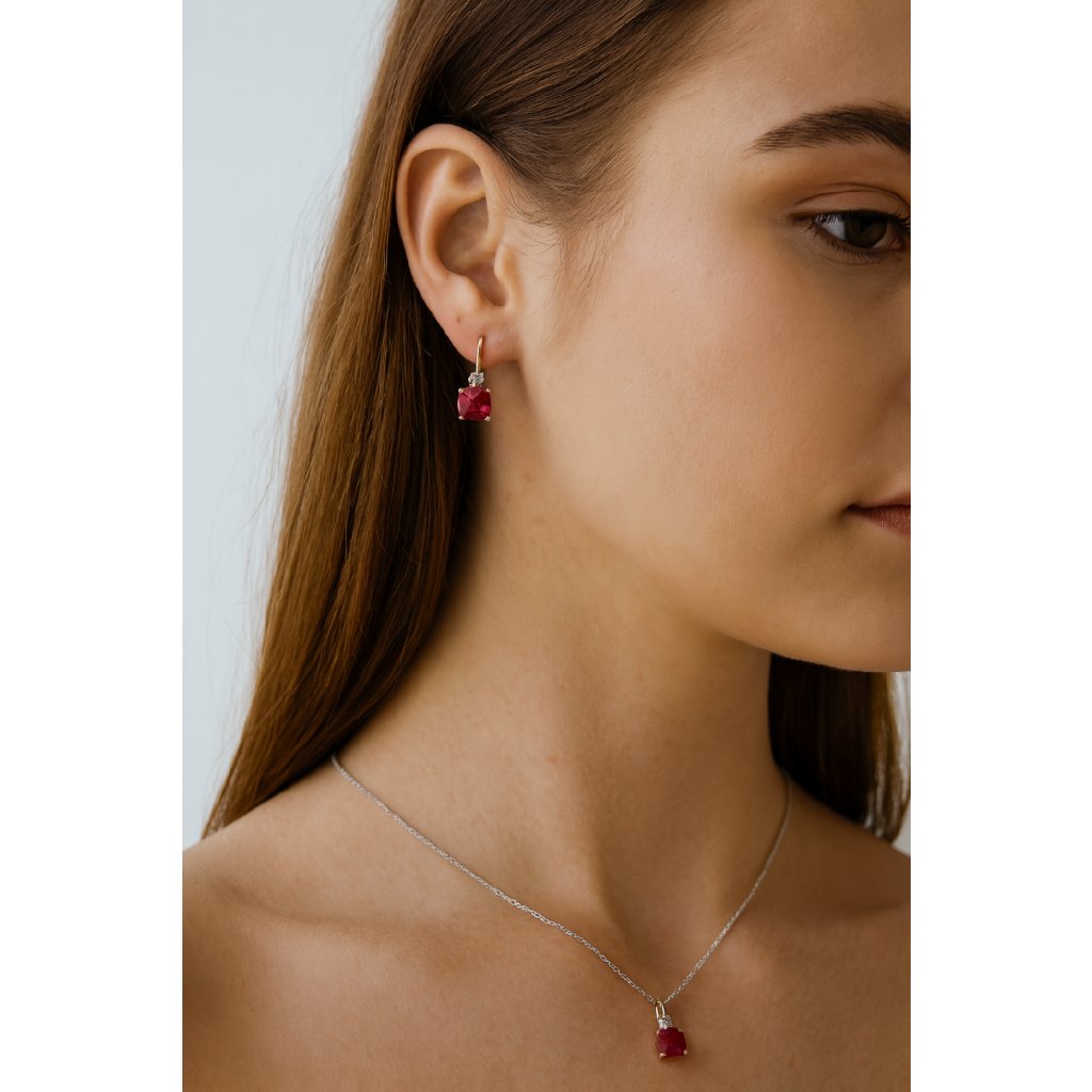Náušnice jsou vyrobeny z kvalitního žlutého zlata 585/1000 a zdobí je krásně broušený syntetický rubín. Hranatý tvar kamene dodává šperku moderní a elegantní vzhled. Díky bezpečnému zapínání se pohodlně nosí po celý den.