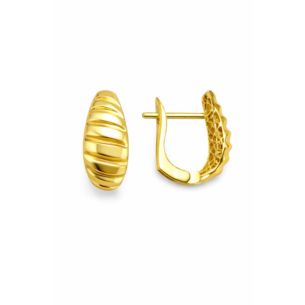 Zlaté náušnice se vzorem na francouzský patent zaujmou propracovaným a elegantním motivem, který dodává šperkům vizuální hloubku.