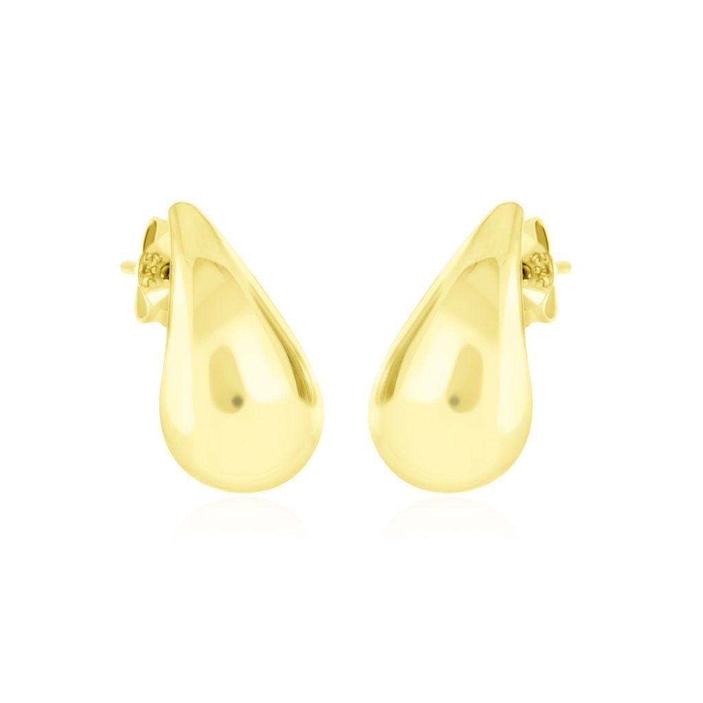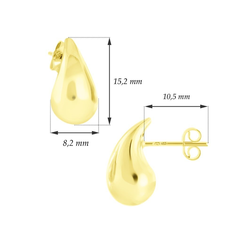 Tyto elegantní zlaté náušnice ve tvaru slz představují spojení klasického a nadčasového designu. Každá náušnice je ve tvaru jemné slzy, která dodává celkovému vzhledu šperku sofistikovanost a jemnost.
