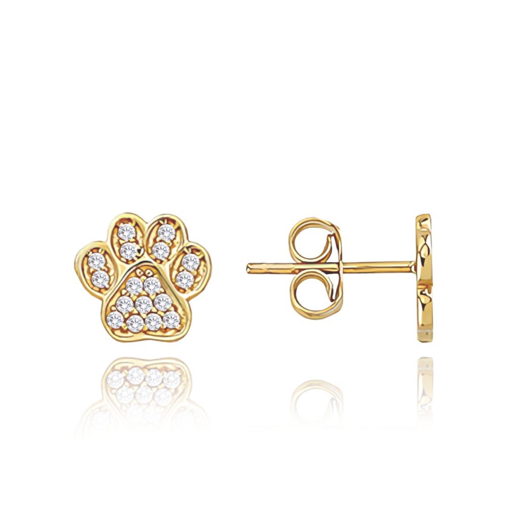 Zlaté náušnice tlapky s bílými zirkony na puzetu