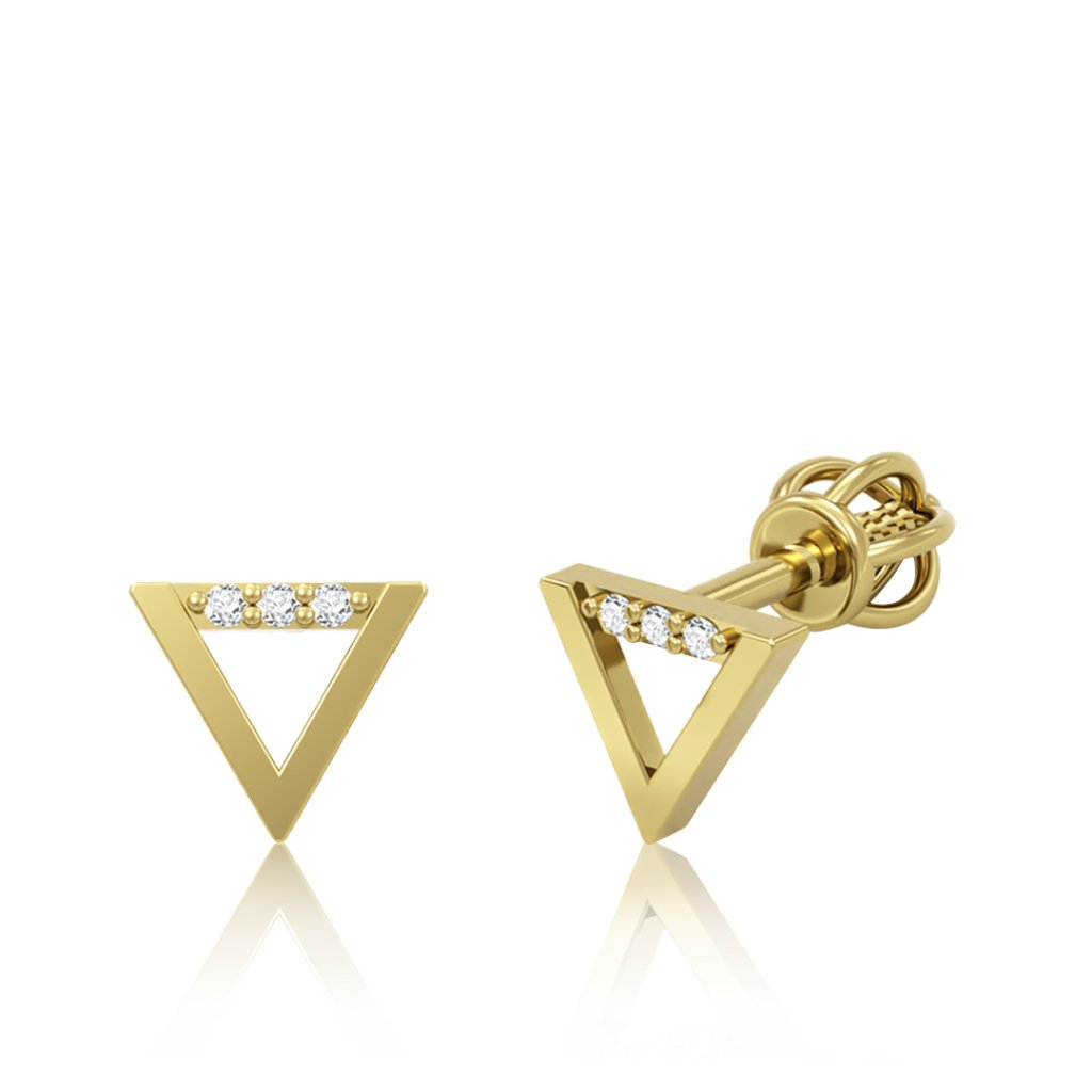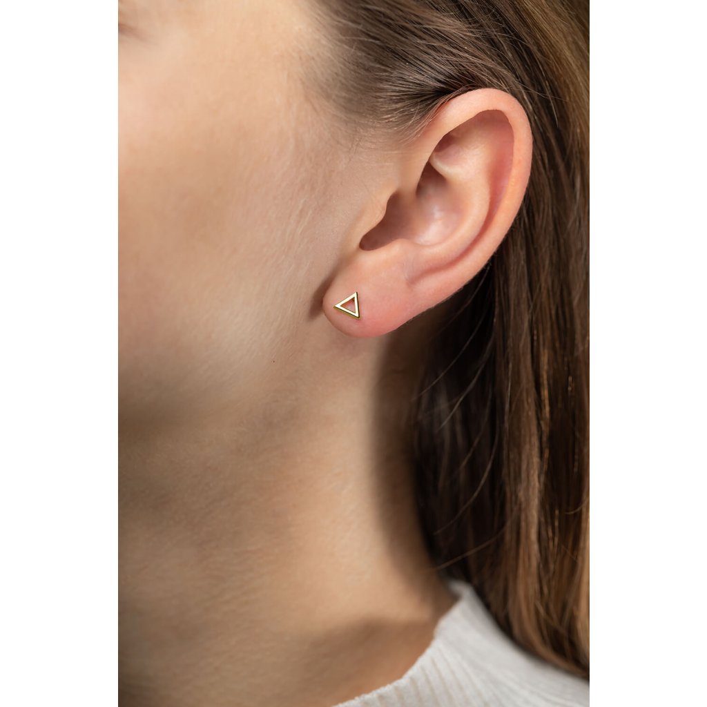 Tyto zlaté náušnice v minimalistickém trojúhelníkovém designu přinášejí čisté linie a současný styl, který snadno podtrhne každodenní i slavnostní outfit.