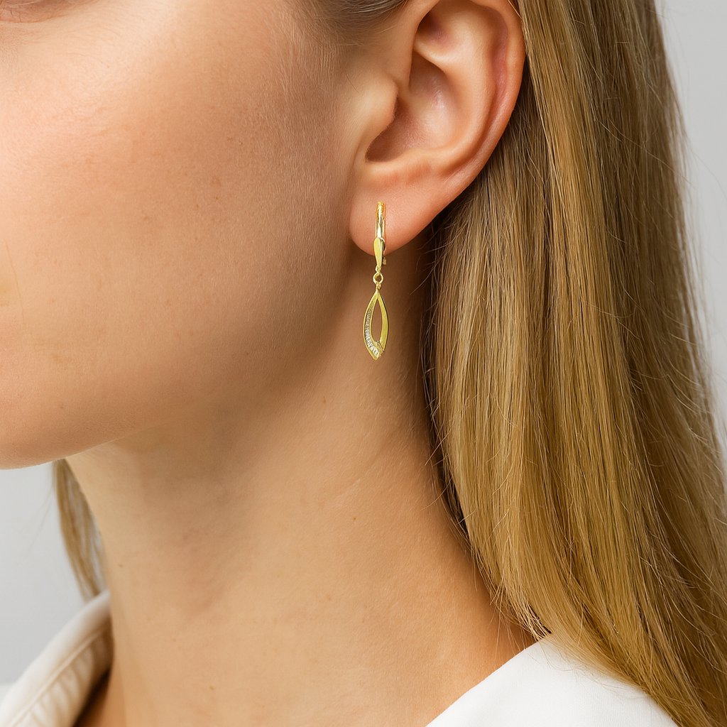 Tyto náušnice jsou dokonalým doplňkem pro ženy, které preferují spojení elegance a moderního designu. Díky kombinaci lesklého zlata a zářivých zirkonů se stanou nepostradatelnou součástí každé šperkovnice a potěší i jako dárek pro blízkou osobu.