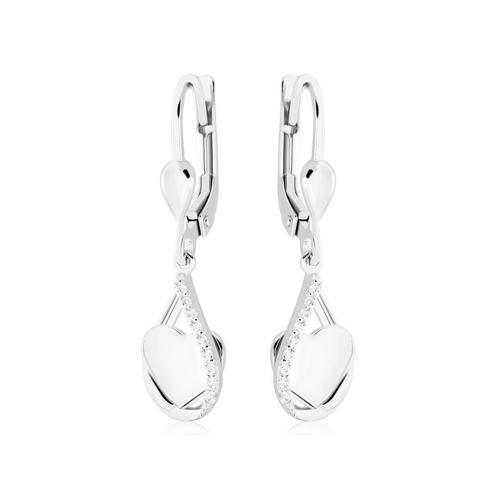 Zlaté visací náušnice ve tvaru kapky se srdíčkem zaujmou svou něžností a romantickým designem. Spojení elegantní kapky a symbolu srdce vytváří harmonický a velmi ženský šperk.