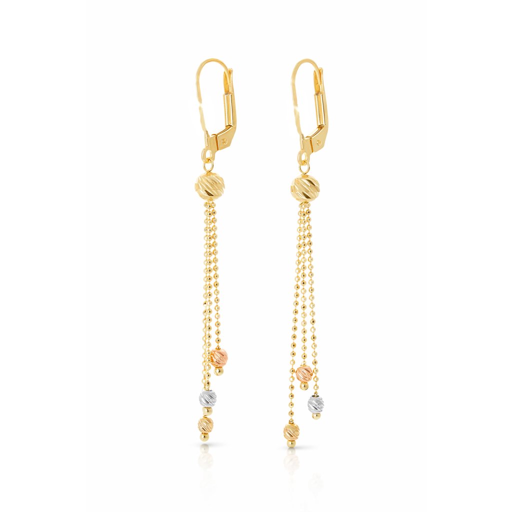 Náušnice mají visací konstrukci s pečlivě zpracovanými kulatými prvky, které působí harmonicky a esteticky. Pohyb prvků při nošení přidává šperkům vizuální zajímavost a ženskou eleganci. Díky univerzálnímu designu se šperky snadno kombinují s jinými šperky i různými outfity.