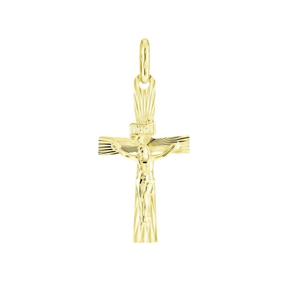 Přívěsek je vyroben ze žlutého zlata s vysokým leskem, které podtrhuje každý pečlivě vypracovaný detail. Postava Krista je plasticky vyobrazena, s důrazem na proporce a výraz. Kříž má čistý, klasický tvar, který snadno ladí s jemnými i robustnějšími řetízky. Díky zaoblenému provedení je příjemný na nošení a vizuálně vyvážený.