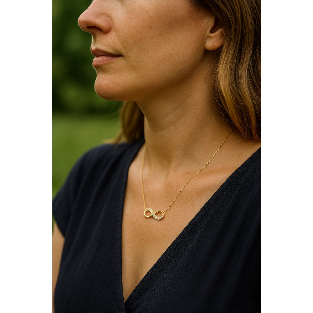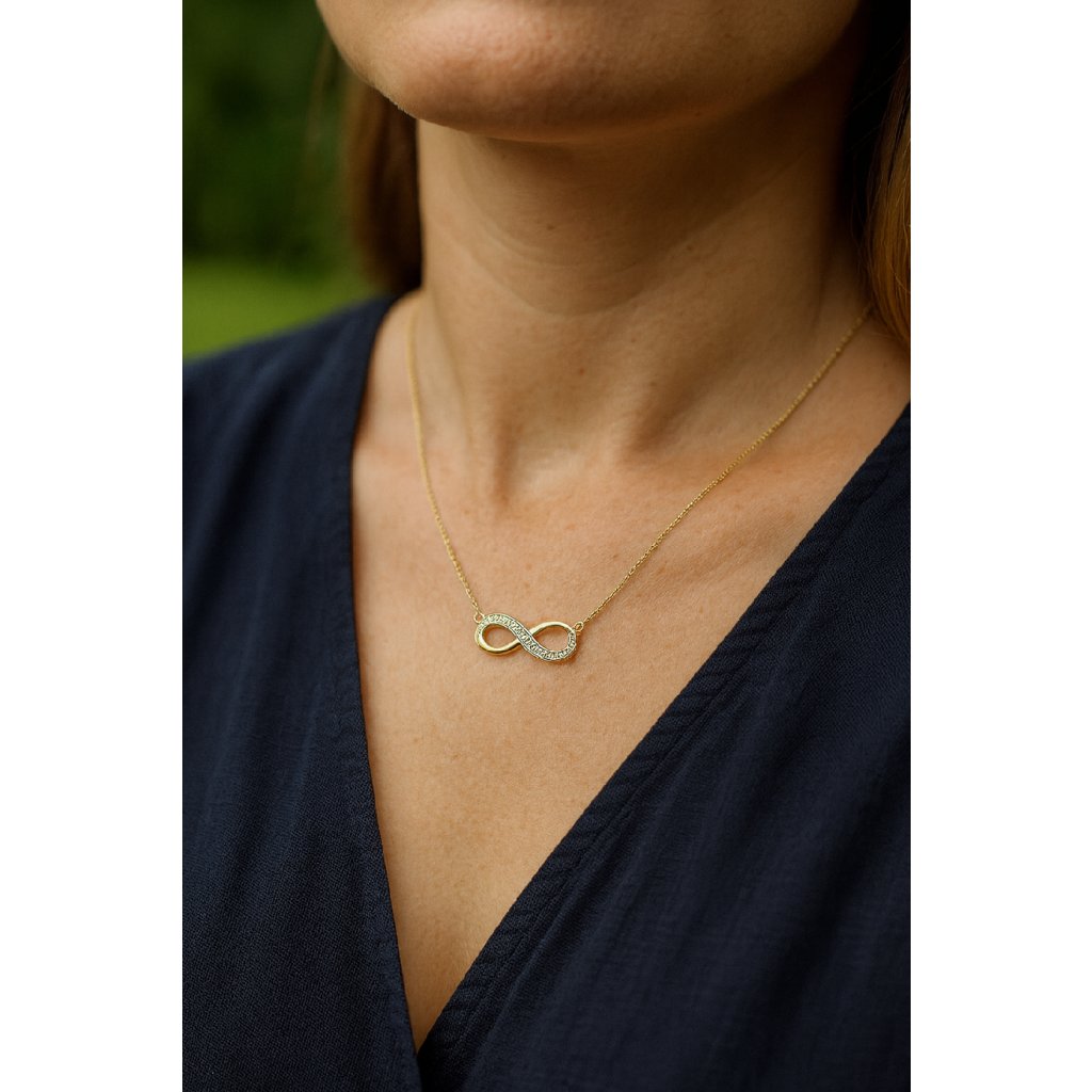 Přineste do svého stylu emotivní náboj a jemnost významu pomocí tohoto nádherného náhrdelníku, který zaujme svou čistou linií symbolu nekonečna zdobeného třpytivými brilianty.