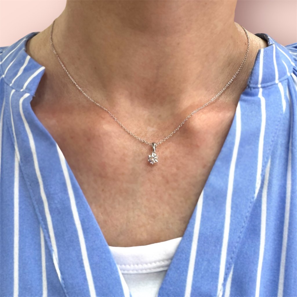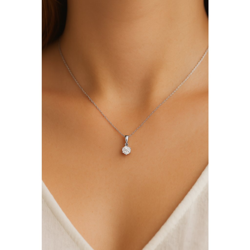Elegantní náhrdelník z 14karátového zlata zdobí centrální laboratorní diamant o hmotnosti 0,50 ct, který se vyznačuje vysokým leskem, čistotou a precizním brusem.