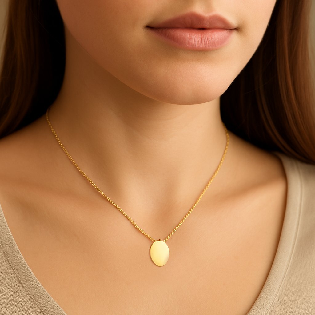 Elegantní a jemný — tento zlatý náhrdelník zaoblený zaujme svojí uhlazenou formou a hladkými liniemi.