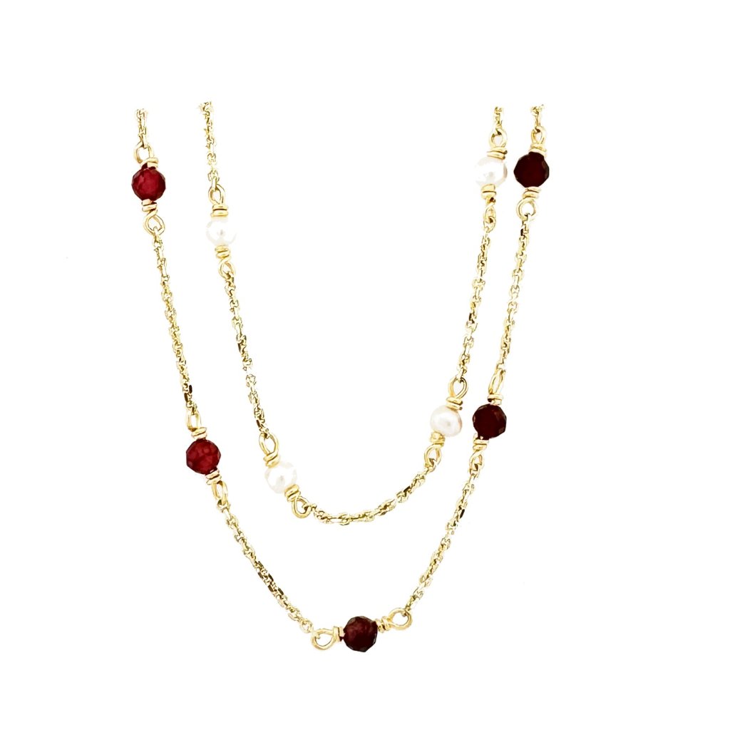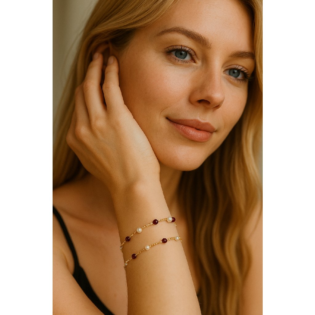 Zlatý náramek perly a spinel červená
