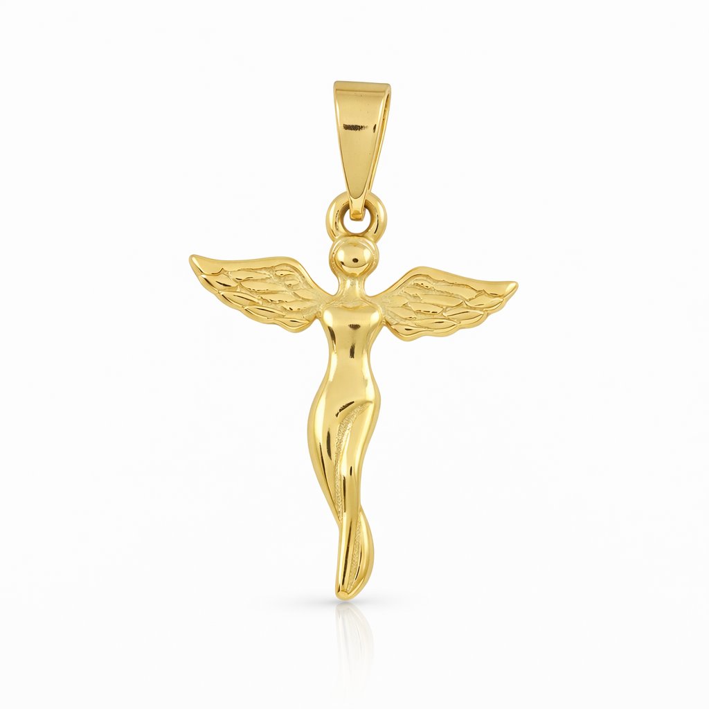 Zlatý přívěsek „Anděl ochránitel“ je něžný a symbolický šperk, který vyjadřuje ochranu, lásku a blízkost. Jeho drobný design působí elegantně a vkusně na krku, a přitom nese silný emocionální význam.