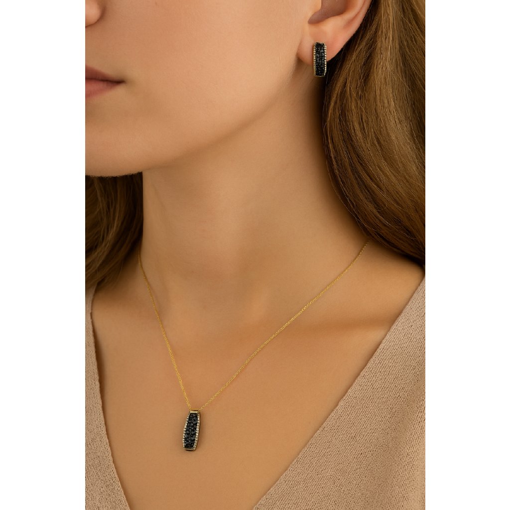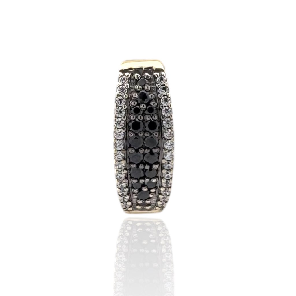 Zlatý přívěsek s bílými a černými zirkony vykouzlí elegantní a moderní look. Jeho sofistikovaný kontrast dodá vašemu stylu jemný nádech luxusu.