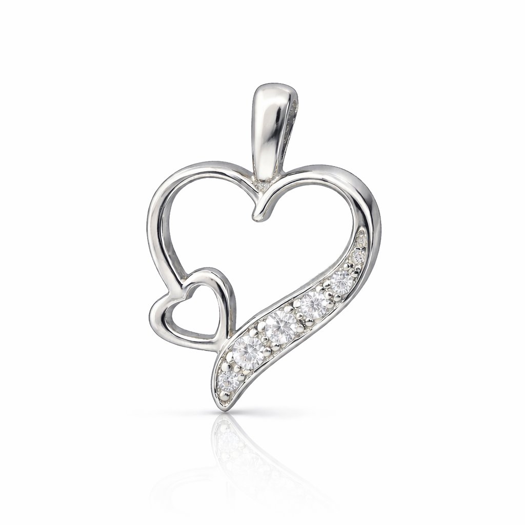 Přívěsek tvoří dvě navzájem propletená srdce různých velikostí, přičemž jedno je osazeno jemnými zirkony pro zvýraznění detailů. Díky kvalitnímu zpracování a harmonickému tvaru působí šperk esteticky a půvabně. Univerzální design se snadno kombinuje s různými řetízky i outfity, od denních až po slavnostní.