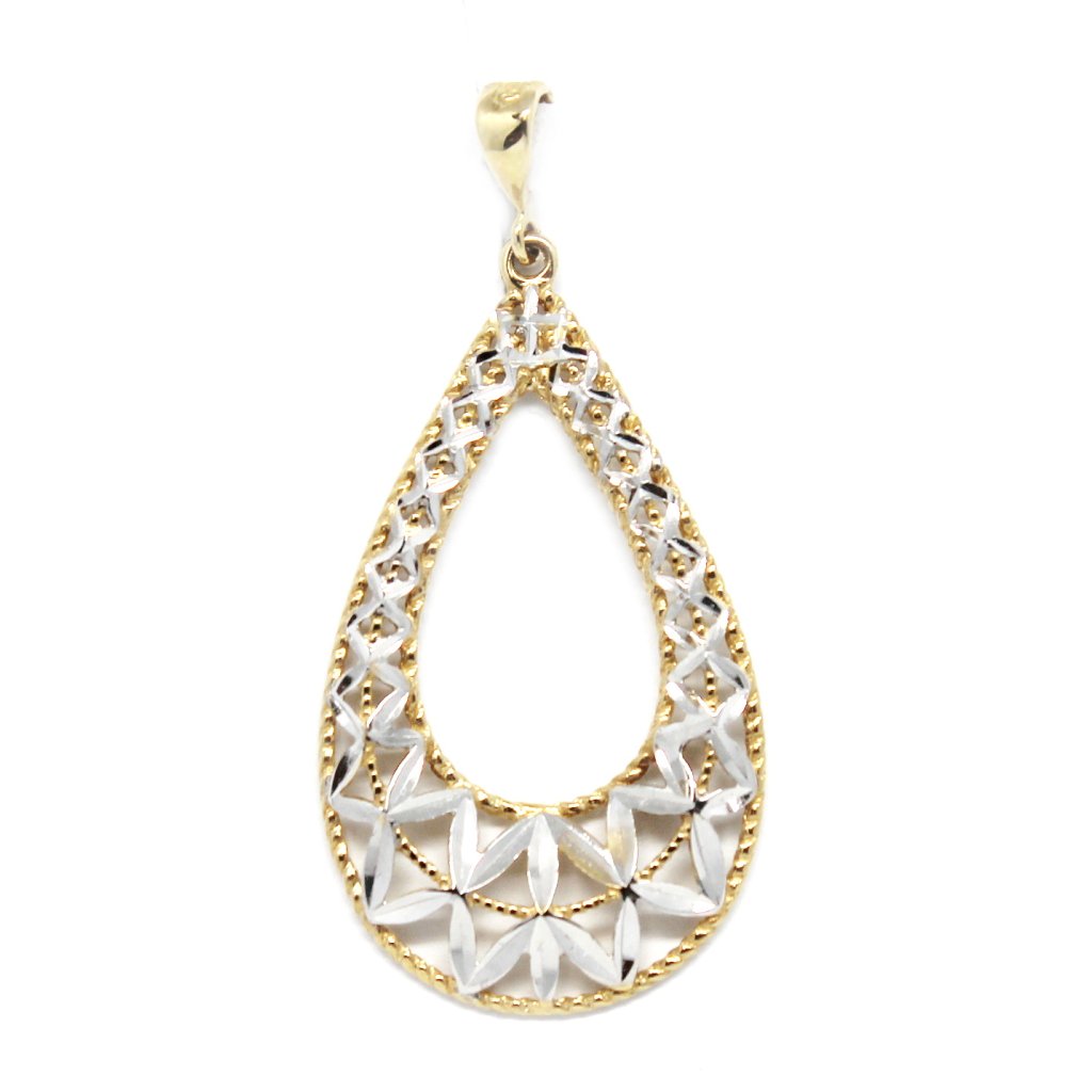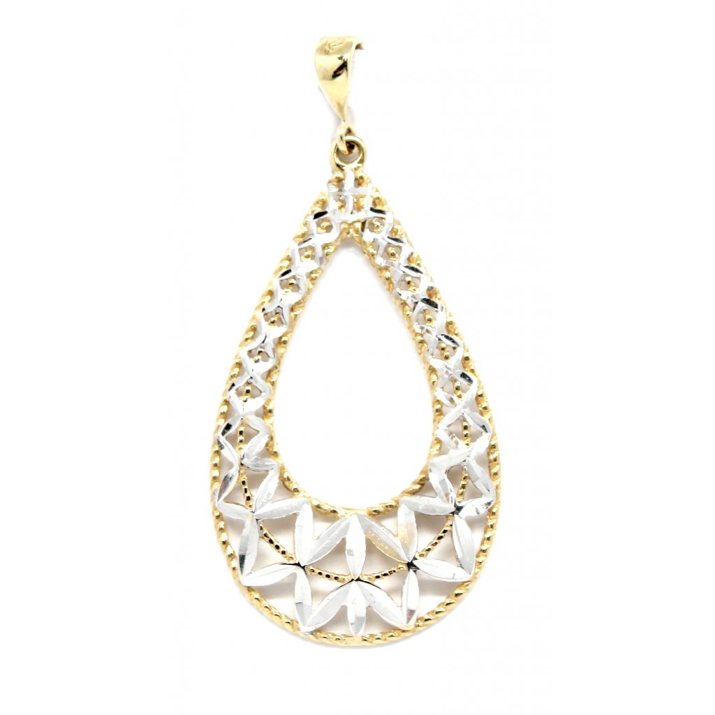 Elegantní lesklý dvojbarevný přívěsek ve tvaru kapky s jemným dekorem.
