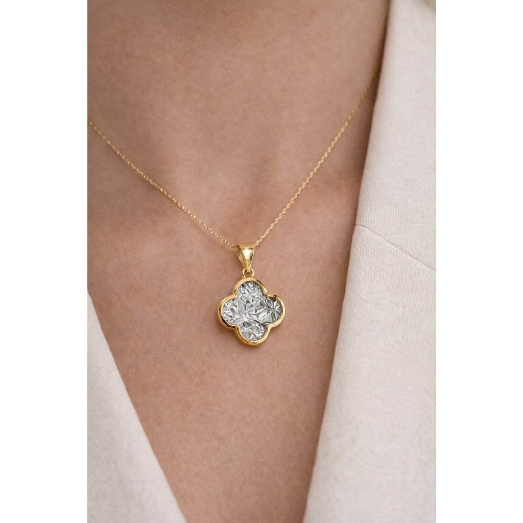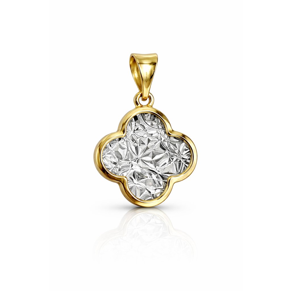 Přívěsek tvoří precizně zpracovaný motiv ve dvou barvách zlata, který krásně odráží světlo a přitahuje pozornost. Gravírování dodává šperku texturu a umožňuje zvýraznit tvar a estetiku celého přívěsku. Díky univerzálnímu designu se šperk snadno kombinuje s různými řetízky i outfity.